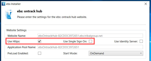 Check that the ebs Ontrack Hub and/or Learner Hub Web App Features for the target EBS environment are set to Use Https and not Use Single Sign On. If your applications follow these settings you can move onto configuring your Reference Data.