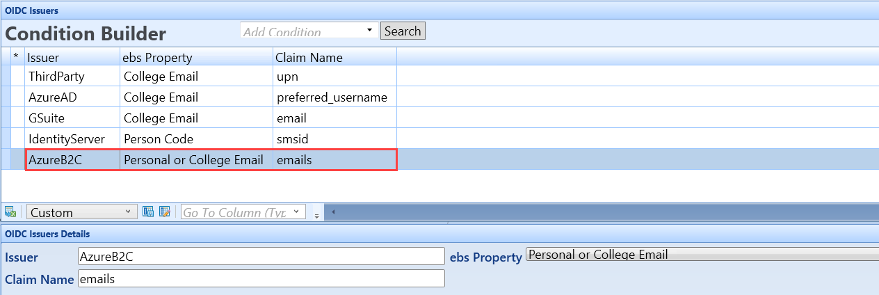 Email Address is the only supported Claim on External Authentication for ebs Ontrack Web Apps facilitated by Azure B2C at this time.